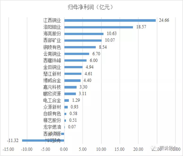 凈利潤方面,江西銅業(yè)歸屬母公司凈利潤為24.66億元,位列銅行業(yè)19家上市公司凈利潤榜單第一。西部資源和*ST夢舟兩家公司出現(xiàn)虧損,*ST夢舟虧損金額高達(dá)11.32億元。