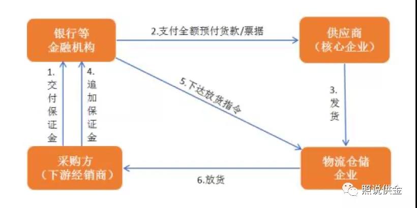 預(yù)付款融資。預(yù)付款融資是對應(yīng)于存貨采購階段的供應(yīng)鏈金融業(yè)務(wù)模式,是建立在真實貿(mào)易背景的基礎(chǔ)上對“未來存貨”的融資。