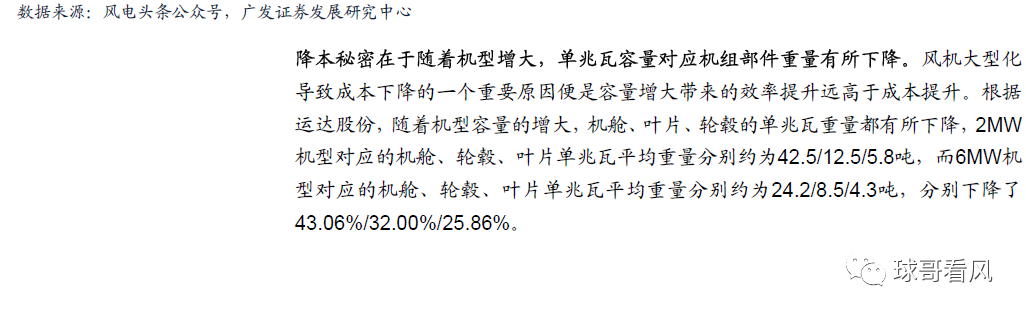 包括華潤、龍源和大唐這三次的主機招標(biāo),結(jié)果統(tǒng)計表明,10家主機廠家中,只有兩家沒有最低價紀(jì)錄。同質(zhì)化的機型競爭明顯加劇,價格內(nèi)卷也是情理之中,從技術(shù)理論分析,價格基本已經(jīng)觸底,同時已止步繼續(xù)降價的趨勢。下一步降價壓力如何分解,風(fēng)機產(chǎn)業(yè)鏈的上游企業(yè)可能要面臨選擇。覆巢之下無完卵,主機降價(盡管大部件不是論千瓦價格銷售,但從行業(yè)分析還是需要承擔(dān)降價壓力)的形勢下,大部件降價也是必然。作者曾經(jīng)看過一篇投行寫的分析報告,大家可以看出來,產(chǎn)業(yè)鏈顯然沒有感受到主機降價的力度。