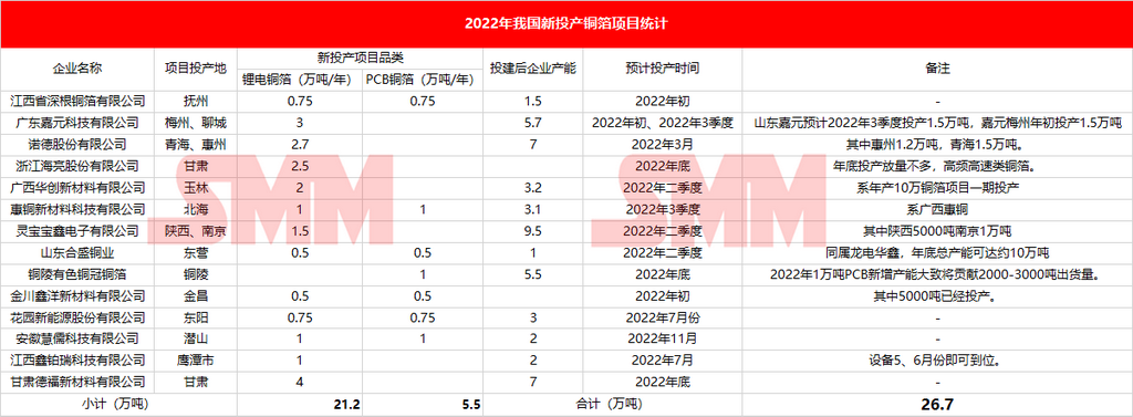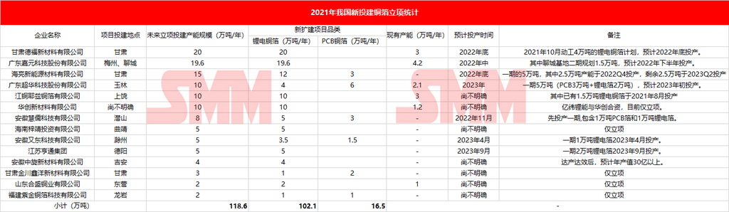 2021年新能源鋰電池行業(yè),仍是各路資本搶占的藍海,銅箔作為鋰電池重要的負(fù)極材料,因新能源行業(yè)的持續(xù)高景氣度而供不應(yīng)求,加工費居于高位,國內(nèi)不少知名企業(yè)都開始往銅箔行業(yè)布局,讓我們來看一下2021年我國立項銅箔項目都有哪些?2022年新投產(chǎn)產(chǎn)能又能達到什么水平?市場供需格局將會如何演變,由SMM銅研究小組為您帶來解析。