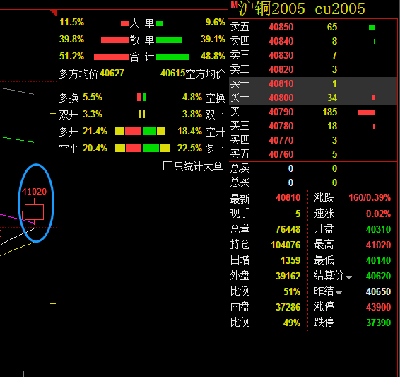 日內(nèi)滬銅主力低開高走,主因全球市場(chǎng)對(duì)于新冠疫情緩解的樂觀情緒有所回升,歐美多國(guó)計(jì)劃逐步解除限制措施以重啟經(jīng)濟(jì),投資者對(duì)于銅需求前景預(yù)期有所改善。此外,今日關(guān)于石油減產(chǎn)的利好消息安撫了投資者的憂慮情緒,為銅價(jià)上升貢獻(xiàn)部分動(dòng)能;近日關(guān)于銅礦端減產(chǎn)或暫停運(yùn)營(yíng)的消息頻頻傳出,日益緊張的銅供應(yīng)也為銅價(jià)提供了支撐。今日滬銅主力合約2005早間跳空低開于40310元/噸,在躍上日均線后,逐漸加大拉漲幅度,午后開盤即直線拉漲攀高于日內(nèi)最高點(diǎn)41010元/噸,在兩次沖高乏力后,盤面回落至40670元/噸,最終收于40810元/噸,漲160元/噸,漲幅0.39%。滬銅指數(shù)日增倉1088手,至33.5萬手;成交量增加1.2萬手,至21.1萬手。