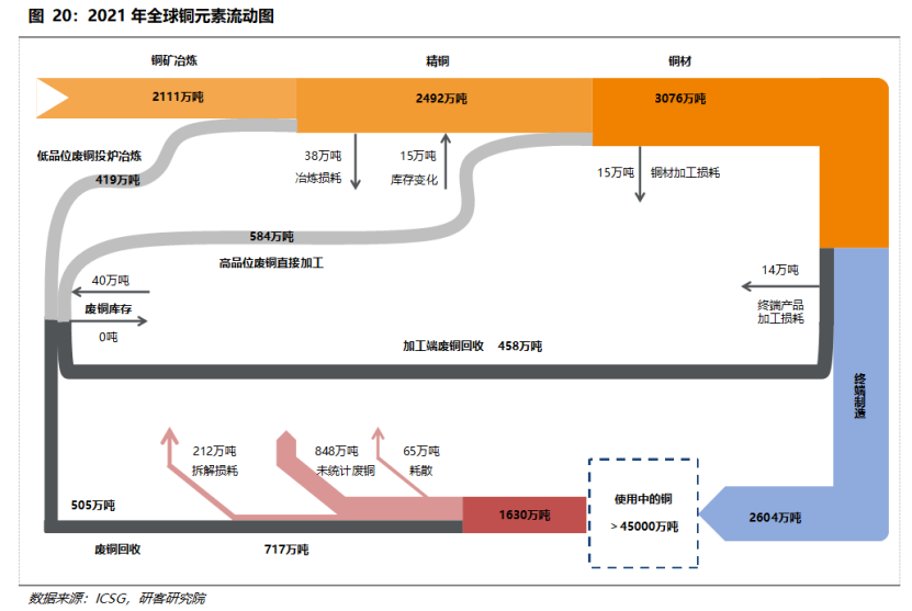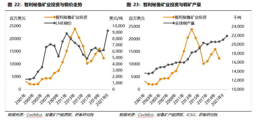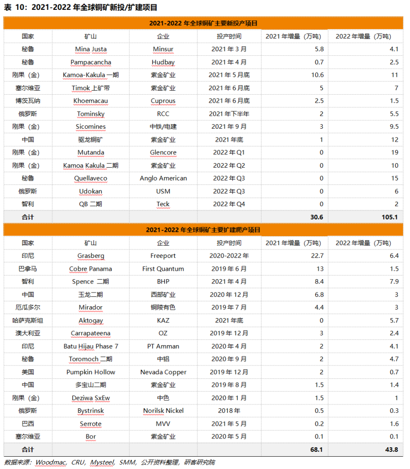 白皮書顯示,2021年起,全球銅礦逐步進(jìn)入擴(kuò)產(chǎn)周期??紤]到礦山新項(xiàng)目建設(shè)到實(shí)際達(dá)產(chǎn)大部分需要至少3-5年的周期,疊加疫情引發(fā)的延后,對(duì)應(yīng)的銅礦的放量從2021年開始。2022年預(yù)計(jì)全球礦產(chǎn)銅的產(chǎn)出將增長3.95%至2189萬噸。