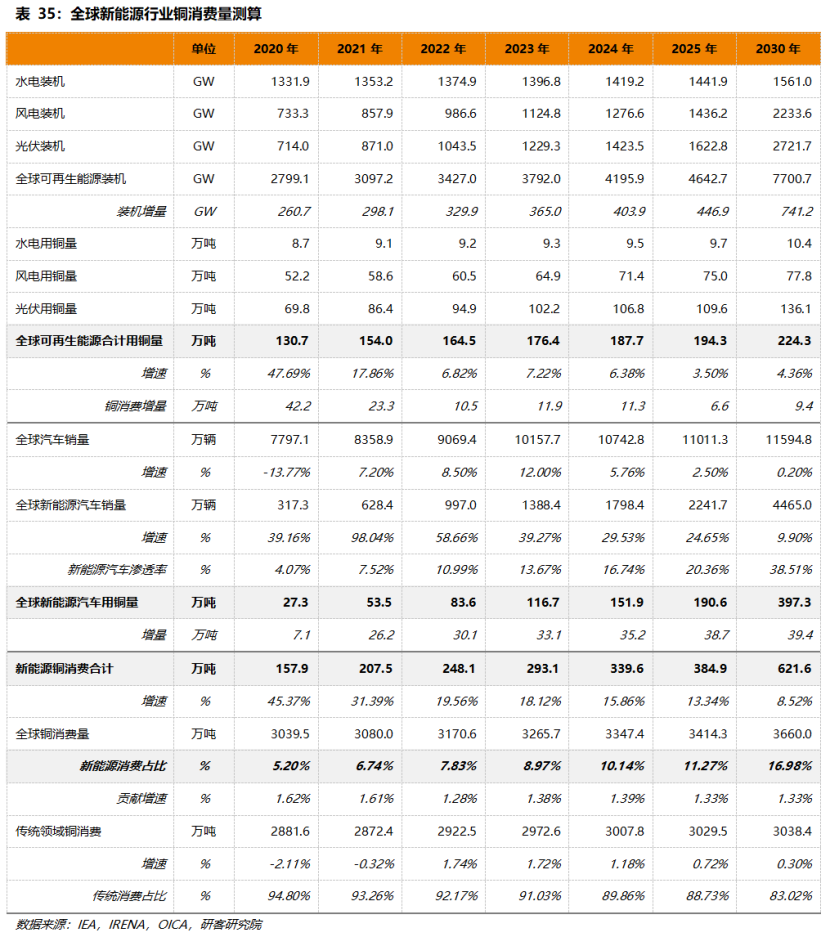 2022年,這些綠色領(lǐng)域的用銅量預(yù)計(jì)將繼續(xù)增長19.56%至248.1萬噸。預(yù)計(jì)到2030年,全球綠色新能源領(lǐng)域銅消費(fèi)量將達(dá)到621.6萬噸,占銅總消費(fèi)量的16.98%。未來10年,預(yù)計(jì)新能源將提供平均每年46萬噸的銅新增消費(fèi),從消費(fèi)占比來看,目前新能源領(lǐng)域還不是銅的主要消費(fèi)領(lǐng)域,但隨著全球綠色能源產(chǎn)業(yè)不斷發(fā)展,將逐步改變銅的邊際消費(fèi)結(jié)構(gòu),成為銅需求端持續(xù)穩(wěn)定的新增長點(diǎn)。