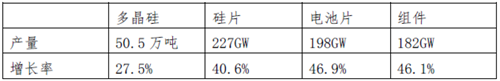 表1 2021年我國光伏產(chǎn)品產(chǎn)量及增長情況