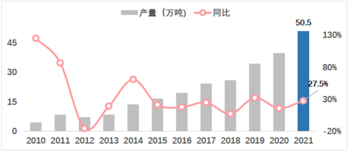 圖3 2010-2021年多晶硅產(chǎn)量變化