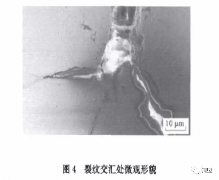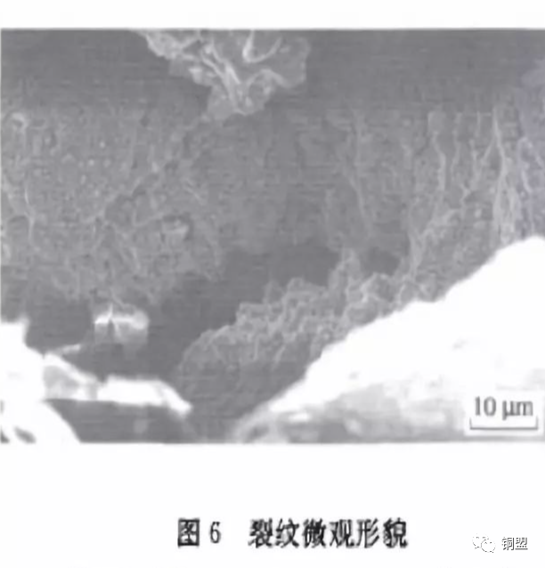 圖4所示;裂紋內部有微小二次裂紋萌生和擴展;