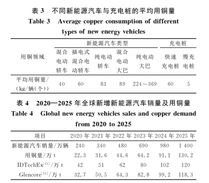 但是,混合電動(dòng)轎 車(chē)、插電式混合電動(dòng)轎車(chē)、純電動(dòng)轎車(chē)等新能源汽車(chē)的用銅量遠(yuǎn)高于傳統(tǒng)內(nèi)燃機(jī)汽車(chē)(表3),平均新能源電動(dòng)車(chē)的用銅量為94kg/輛。另外,快速充電樁平均含銅量為60kg/個(gè),慢充電樁為5kg/個(gè)。