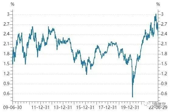 我們認為,銅與經(jīng)濟高度相關(guān),這段時間的通脹預(yù)期回落使得銅價很難抬頭,10年期美債隱含的通脹預(yù)期也已經(jīng)逼近2021年以來的低點,而美國通脹預(yù)期在美聯(lián)儲和歐洲央行加息加速的背景下,也很難抬頭。在未來半年美國陷入衰退的概率增加,短期通脹預(yù)期和銅價的表現(xiàn)都將承壓。