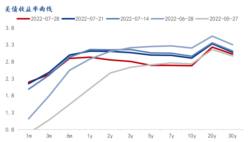 美國(guó)GDP數(shù)據(jù)公布后,長(zhǎng)短端利差有所回升,此前10年期與2年期美債收益率倒掛,10年期與3個(gè)月美債收益率差也迅速回落,5月利差一度跌至0.19的低值。