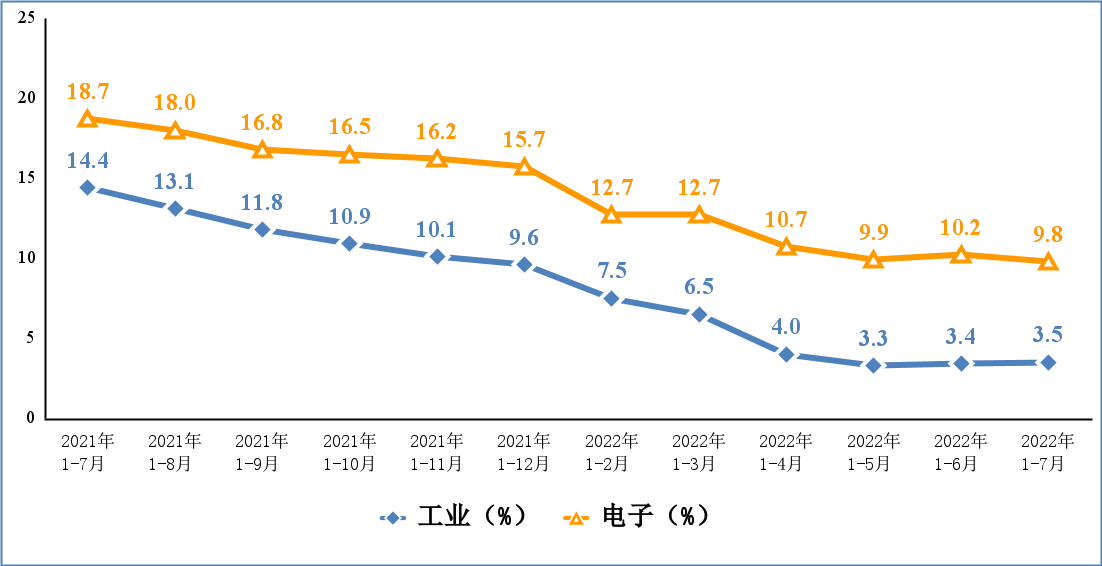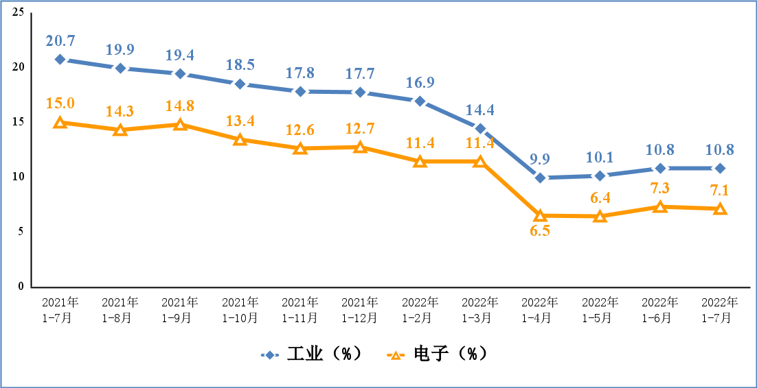 圖1 電子信息制造業(yè)和工業(yè)增加值累計(jì)增速