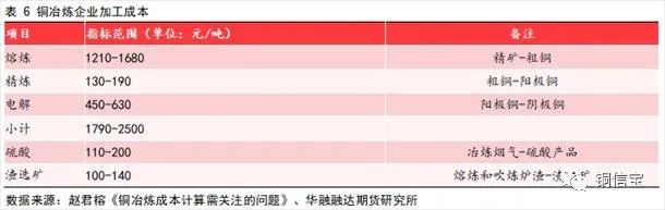 電解成本主要包括電解消耗和凈液消耗中的硫酸和蒸汽來源等;冶煉煙氣制酸成本主要包括尾氣脫硫成本;渣選礦成本一般按來料加工形式進行計算。總體來說國內(nèi)火法煉銅的總成本在1790-2500元/噸左右。