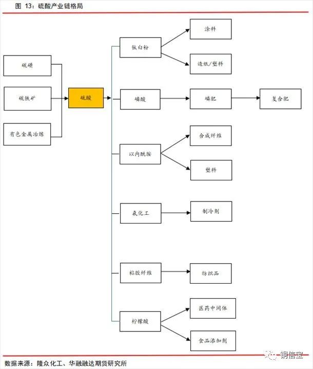 硫酸的下游消費行業(yè)主要集中在化肥和工業(yè)耗酸兩大類,其中2021年化肥消耗占比達到了53%,工業(yè)耗酸占比達到了45%。具體的消費項目主要為磷酸一銨、磷酸二銨、硫酸法鈦白粉等領(lǐng)域,其中磷肥的硫酸消費占比到達53%。