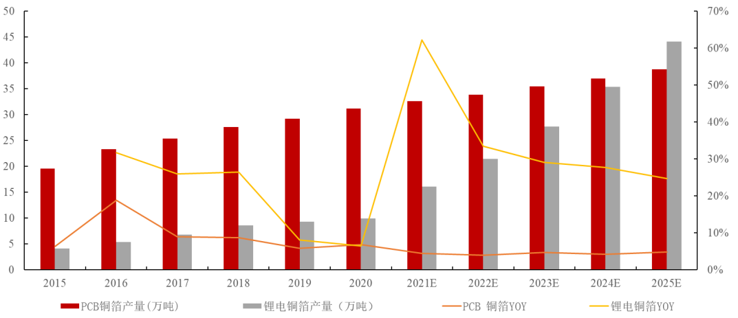 圖:2025 年鋰電銅箔產(chǎn)量將超過標(biāo)準(zhǔn)銅箔