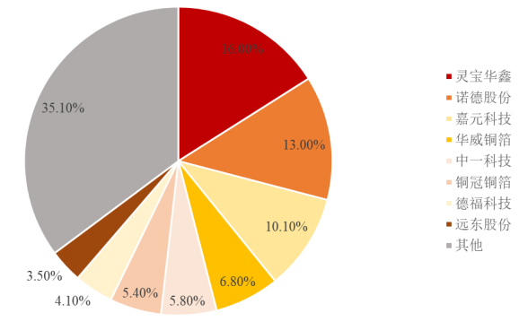 從下游看,標(biāo)準(zhǔn)銅箔目前毛利率整體上較低,核心利潤來源還是鋰電銅箔。鋰電銅箔環(huán)節(jié)自身競爭格局較為分散,相反下游客戶鋰電環(huán)節(jié)則格局更加集中,這也意味著在對客戶這一方面,銅箔企業(yè)也很難具備強(qiáng)勢的話語權(quán)。