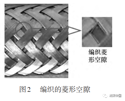 單一的銅絲屏蔽,雖然不受鋁塑復(fù)合帶壽命的影響,整體使用壽命能滿足新能源汽車的壽命要求,但編織屏蔽的結(jié)構(gòu)方式為交叉織網(wǎng)的形式,交叉織網(wǎng)時,總會留下菱形的空隙,如圖?2 所示,致使銅絲編織的面積覆蓋率不能達到100%,且空隙的面積和形狀會因編織規(guī)格參數(shù)不一樣而有差異。而空隙面積和形狀,又會對屏蔽效果產(chǎn)生直接的影響,導(dǎo)致屏蔽效果達不到最佳狀態(tài)。根據(jù)計算及實際測試可以發(fā)現(xiàn),隨著編織角度變化(菱形空隙的形狀也會相應(yīng)改變),轉(zhuǎn)移阻抗也會隨之改變,如今汽車日益智能化、自動化而使得對于各部件的抗干擾能力要求越發(fā)嚴苛。單獨使用銅絲編織進行屏蔽已經(jīng)很難滿足使用要求,此方案現(xiàn)基本不再采用。