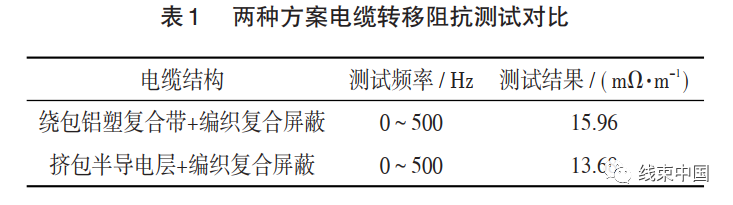 如表?1 所示,經(jīng)過測試結(jié)果對比分析,更改設(shè)計后的電纜,屏蔽效果并沒減弱,所以新設(shè)計的方案是可行有效的。