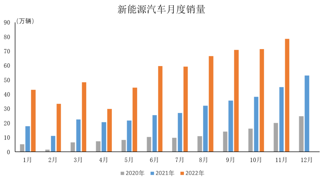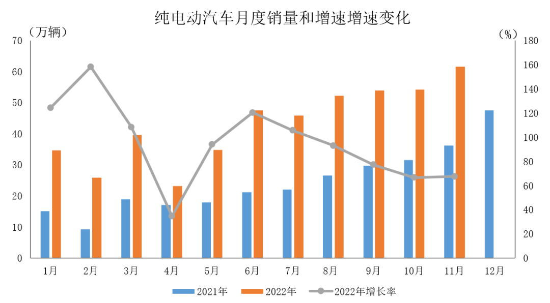 據(jù)中國汽車工業(yè)協(xié)會統(tǒng)計分析,2022年11月,新能源汽車?yán)^續(xù)保持快速增長,月度產(chǎn)銷再創(chuàng)新高。