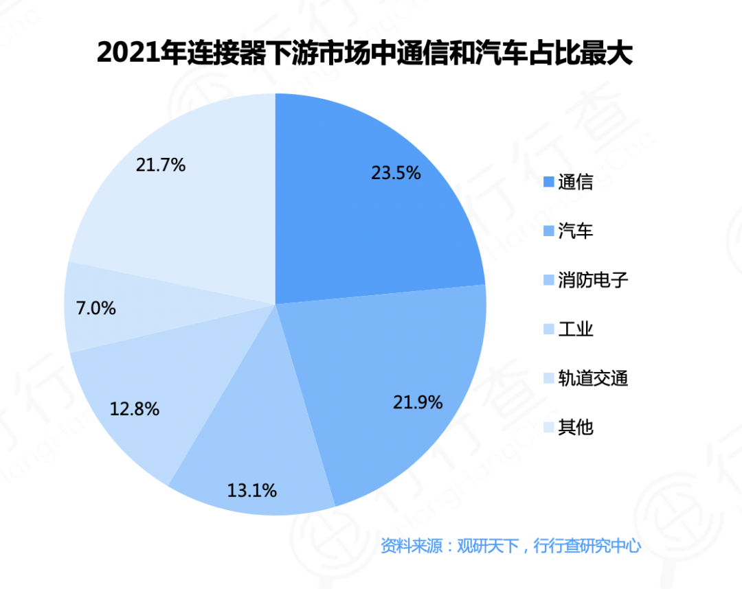 連接器下游行業(yè)競(jìng)爭(zhēng)格局穩(wěn)定且多為傳統(tǒng)行業(yè),主要包括通信、汽車、消費(fèi)電子和工業(yè)控制等。
