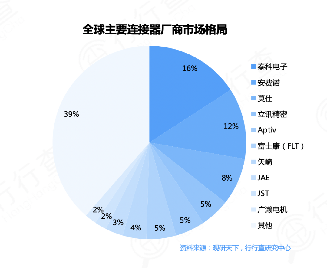2020年,泰科電子在連接器市場(chǎng)的占有率達(dá)到16%,安費(fèi)諾達(dá)到了12%,莫仕占有8%的市場(chǎng)份額。