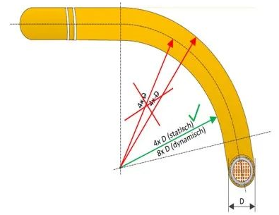在動(dòng)態(tài)負(fù)載下,高壓導(dǎo)線最小的內(nèi)彎曲半徑不應(yīng)小于八倍的導(dǎo)線外直徑。