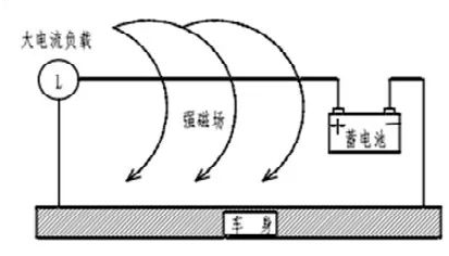 (3) 高壓線束導(dǎo)通高壓電時(shí),會(huì)在周圍形成強(qiáng)磁場(chǎng),因此高壓回路的負(fù)載和電源之間的布置距離應(yīng)盡可能短,同時(shí)將高壓線束靠近車身金屬鈑金布置,從而減小回路面積,降低磁場(chǎng)的對(duì)外輻射量。
