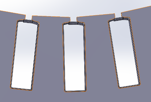 - 周向間隙 = 鐵芯槽寬 -(銅線寬度*1+絕緣紙厚度*2)≈0.1~0.2mm