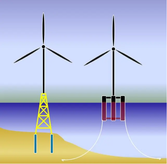 海上風(fēng)電的風(fēng)機(jī)一般通過(guò)機(jī)械結(jié)構(gòu)部件插入海底實(shí)現(xiàn)固定,眾多海上風(fēng)電發(fā)電機(jī)產(chǎn)生電能通過(guò)電纜匯流到海上升壓站平臺(tái),升壓后向陸地方向輸送??梢韵胂螅S著離岸距離的增大,海上風(fēng)力發(fā)電機(jī)和海上平臺(tái)固定的技術(shù)難度越大,相應(yīng)的成本也越高。面對(duì)廣闊的海洋,尤其是遠(yuǎn)海深海,我們?nèi)绾纬浞职l(fā)掘和利用其豐富的風(fēng)力資源呢?這時(shí)候,漂浮式海上風(fēng)電出現(xiàn)了。