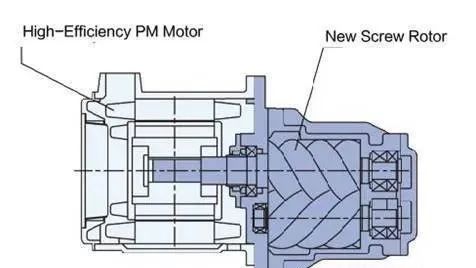 2、由于主機(jī)陽(yáng)轉(zhuǎn)子與永磁電動(dòng)機(jī)轉(zhuǎn)子采用一體軸,故傳動(dòng)效率為100%。