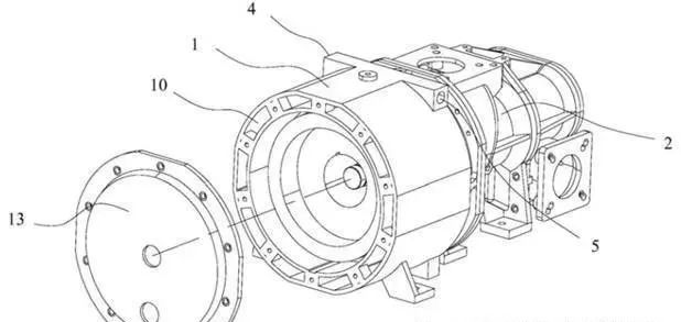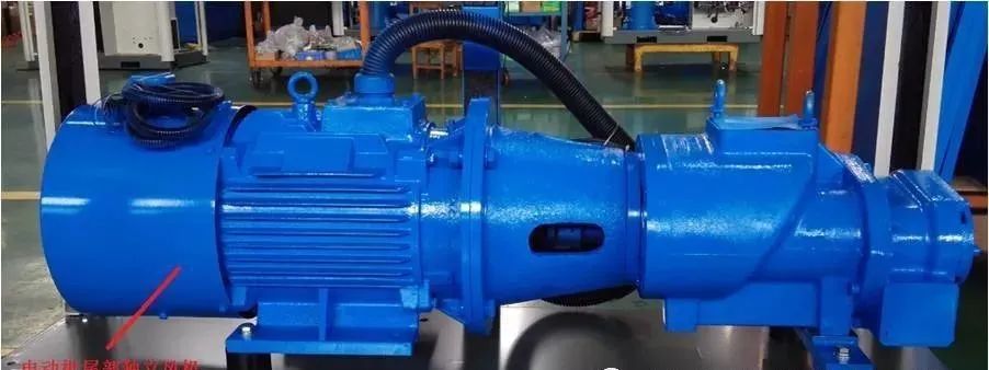 主機(jī)與永磁電機(jī)通過(guò)接筒連接,通過(guò)聯(lián)軸器傳動(dòng),主機(jī)與永磁電機(jī)非一體軸,而是各自獨(dú)立的分體軸,永磁電機(jī)尾部配有獨(dú)立風(fēng)機(jī)。