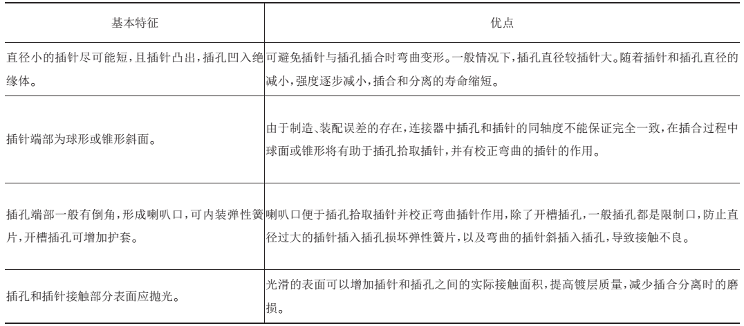 表一? 接觸件的基本結(jié)構(gòu)特征