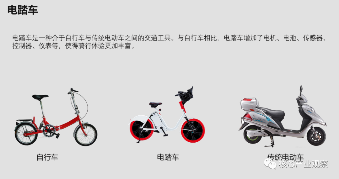 電踏車既保留了原始騎行體驗(yàn),又提供了智能化輔助動(dòng)力。它是一種介于自行車與傳統(tǒng)電動(dòng)車之間的交通工具,電踏車主要通過傳感器根據(jù)騎行信號(hào)提供相應(yīng)動(dòng)力輔助,減少騎行者出力,讓用戶騎行更加輕松。與自行車相比,電踏車增加了電機(jī)、電池、傳感器、控制器、儀表等,使得騎行體驗(yàn)更加豐富。與傳統(tǒng)電動(dòng)車相比,電踏車不是通過手的轉(zhuǎn)握來控制車速,而是通過傳感器捕捉騎行的信號(hào),進(jìn)而理解騎行者的騎行意圖,提供相應(yīng)的動(dòng)力輔助,使得騎行更加智能。