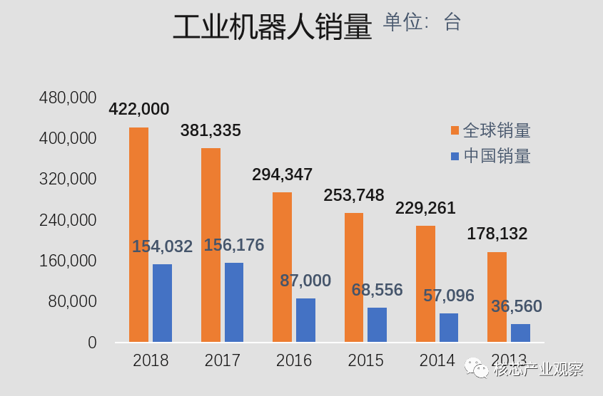 圖5:工業(yè)機(jī)器人銷量。(數(shù)據(jù)來源:國(guó)際機(jī)器人聯(lián)合會(huì))