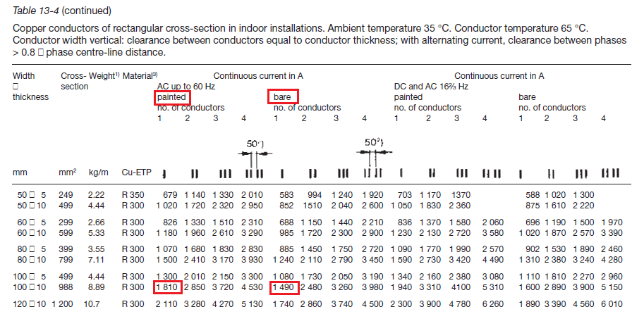 例如銅排規(guī)格100*10,涂漆銅排的載流量為1810A,而裸銅排載流量為1490A,比涂漆銅排低了17.6%。