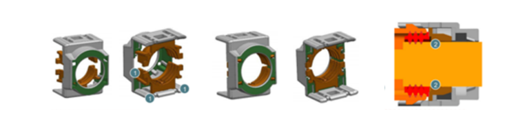 固定式連接器一般都是以螺栓直接連接的,螺栓連接是在整車上經(jīng)常看見(jiàn)的一種連接方式,這種方式的好處在于它的連接可靠性,螺栓的機(jī)械力是可以抵御汽車級(jí)的振動(dòng)影響的,其成本也相對(duì)低廉,但是其也存在一定的局限性,拆卸安裝和維護(hù)都有極高的成本,占的空間也大。