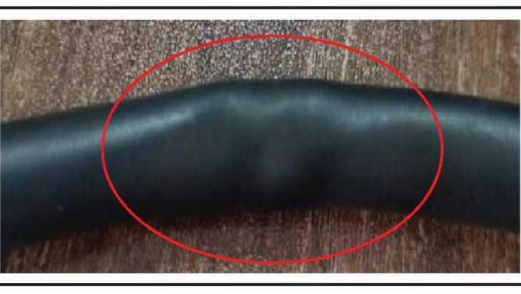 輪線束加工過程中保護(hù)管扭轉(zhuǎn)或布線設(shè)計(jì)不合理,輪線束裝配時(shí)扭轉(zhuǎn)一定角度(45°以上)安裝在汽車上,會導(dǎo)致保護(hù)管變形,產(chǎn)生折痕。