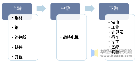 微特電機產(chǎn)業(yè)鏈由上游原材料、中游生產(chǎn)制造供應(yīng)商、下游應(yīng)用領(lǐng)域三部分構(gòu)成。微特電機上游原材料主要是鋼材、銅和漆包線等;下游主要應(yīng)用于汽車、家用電器、通信、計算機、機器人、航天工業(yè)、工業(yè)機械、軍事等領(lǐng)域。