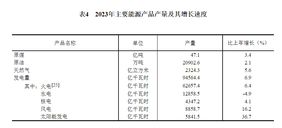 初步核算,全年一次能源生產(chǎn)總量48.3億噸標(biāo)準(zhǔn)煤,比上年增長4.2%。