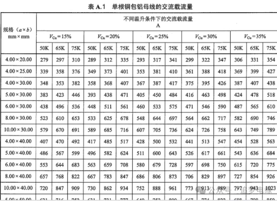在常溫環(huán)境(通常指?25℃)下,銅排和銅包鋁排的載流量有一定的標(biāo)準(zhǔn)值。但如果應(yīng)用場(chǎng)景的環(huán)境溫度較高,例如在高溫的工業(yè)車(chē)間或者靠近發(fā)熱源的位置,它們的載流量就需要降容。此時(shí)需要根據(jù)載流量選型手冊(cè)考量好降容后的載流量。對(duì)于銅包鋁母排可參照《NBT 42002-2023 電工用銅包鋁母線》: