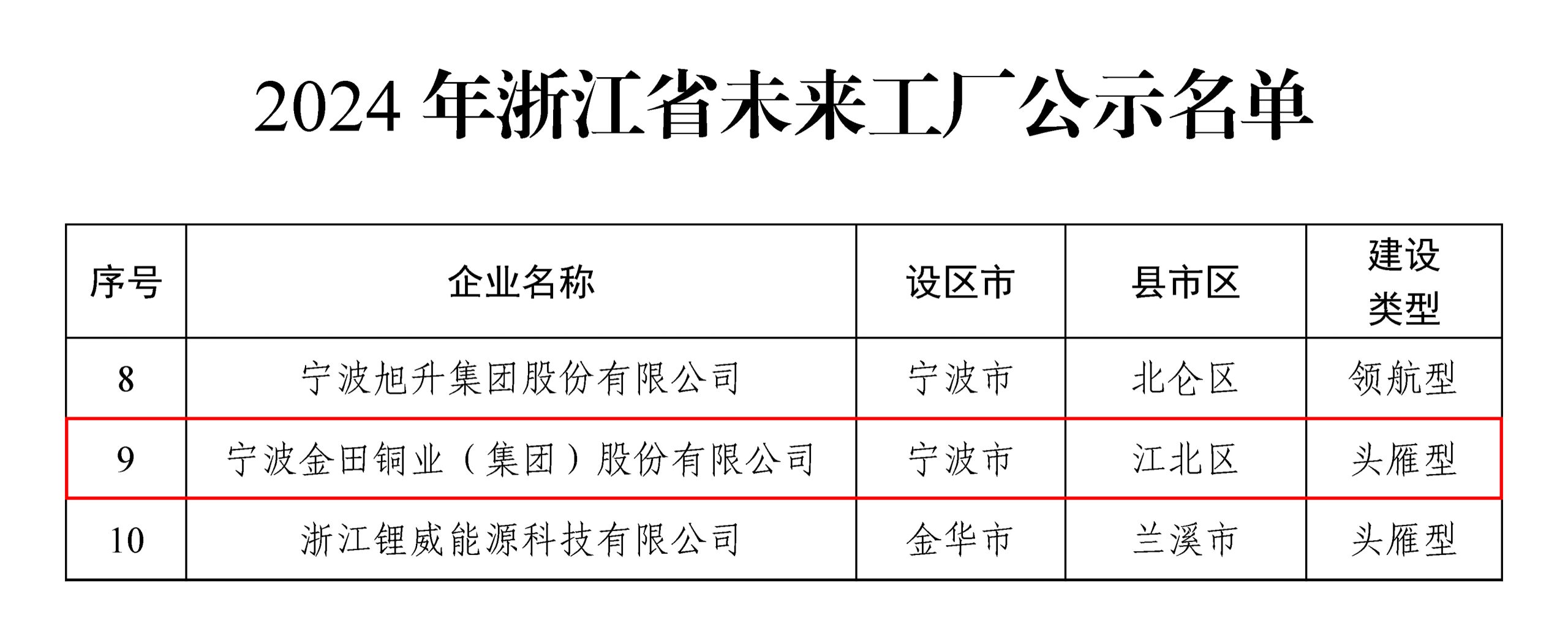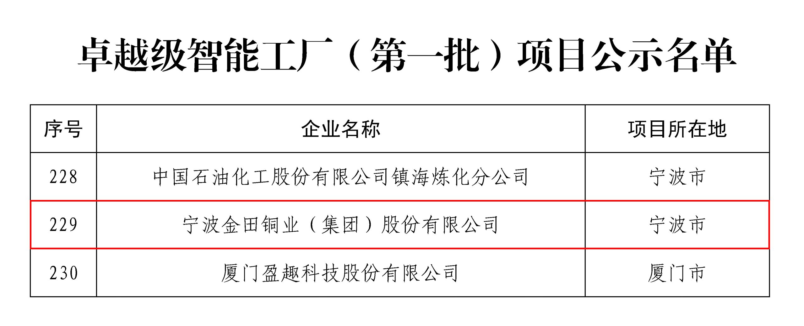 日前,國家工業(yè)和信息化部“卓越級智能工廠(第一批)”項目名單和浙江省經(jīng)信廳2024年省級“未來工廠”名單完成公示,金田銅業(yè)均成功入選,彰顯了金田銅業(yè)在數(shù)字化轉(zhuǎn)型和高質(zhì)量發(fā)展方面的豐碩成果。