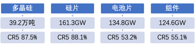 圖1 2020年光伏各環(huán)節(jié)產(chǎn)能及集中度(CPIA)