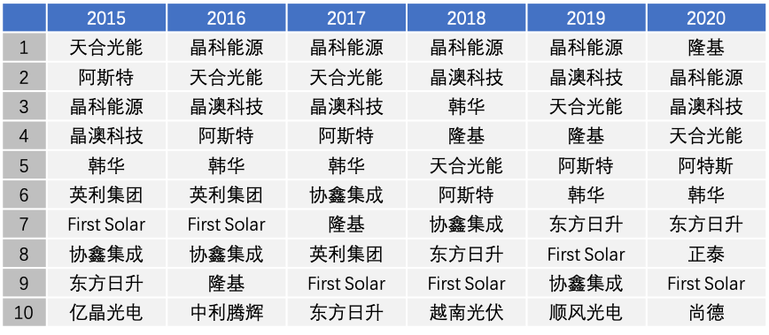 圖5歷年全球組件出貨量前十名(PV InfoLink)