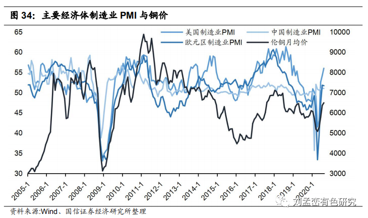 全球主要經(jīng)濟(jì)體制造業(yè)復(fù)蘇利好銅價。銅在各個領(lǐng)域的廣泛應(yīng)用決定了銅價與宏觀經(jīng)濟(jì)走勢密切相關(guān),其工業(yè)屬性決定了銅價與主要經(jīng)濟(jì)體制造業(yè)PMI走勢具有很強(qiáng)的關(guān)聯(lián)性。當(dāng)前主要經(jīng)濟(jì)體均處于疫情后的復(fù)蘇時期,9月美國和歐元區(qū)Markit制造業(yè)PMI分別為53.5和53.7,均已連續(xù)3個月位于榮枯線以上且環(huán)比8月份數(shù)據(jù)有較大上升,中國制造業(yè)PMI指數(shù)連續(xù)6個月位于榮枯線以上且新訂單分項(xiàng)指數(shù)持續(xù)向好,說明全球主要經(jīng)濟(jì)體制造業(yè)具有較強(qiáng)的復(fù)蘇動力,中短期內(nèi)將繼續(xù)拉動銅消費(fèi)。