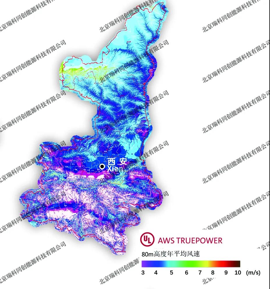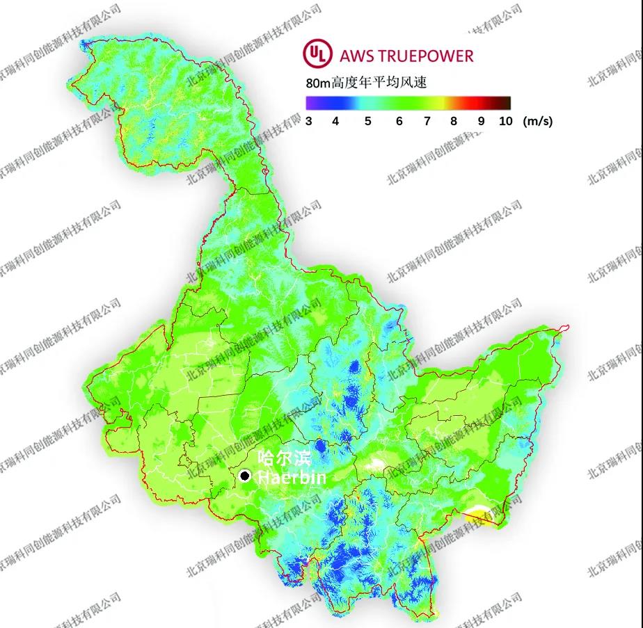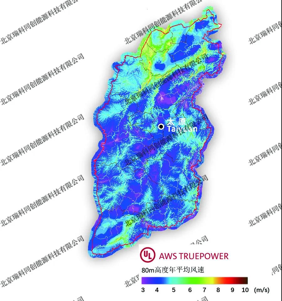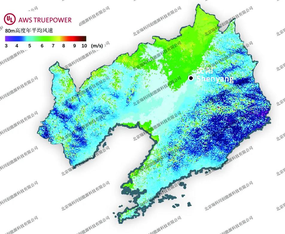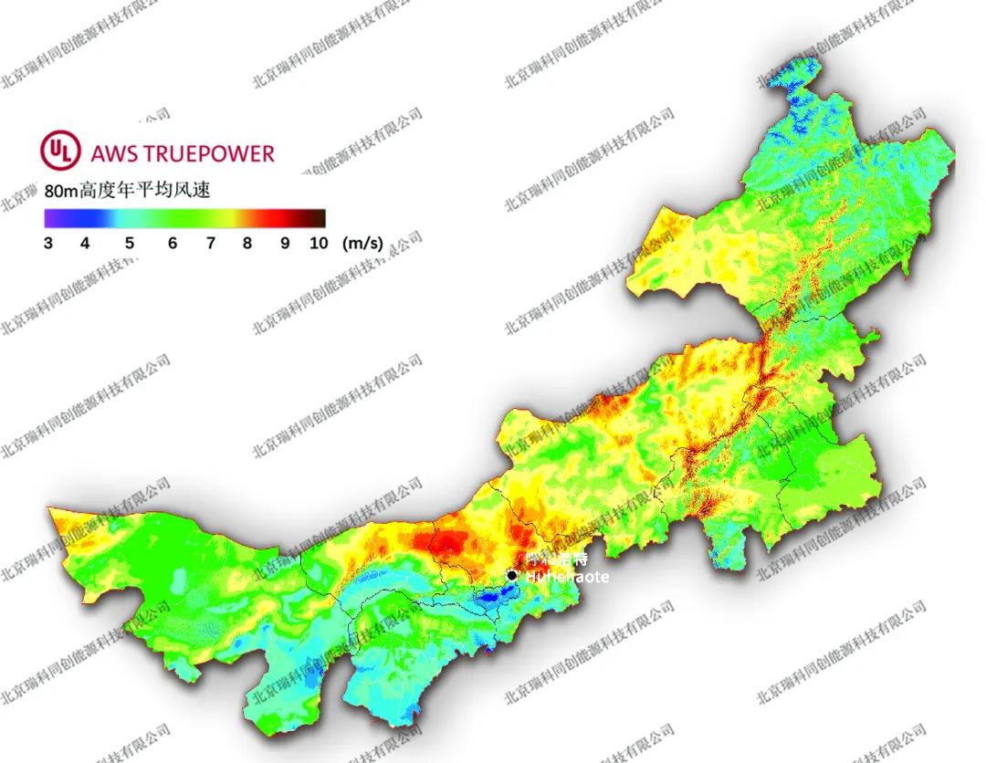 圖譜來(lái)源:瑞科科技與美國(guó)UL AWS Truepower公司就Windnavigator風(fēng)資源宏觀選址模塊,聯(lián)合發(fā)布的200m高分辨率年平均風(fēng)速分省圖譜。華北地區(qū)