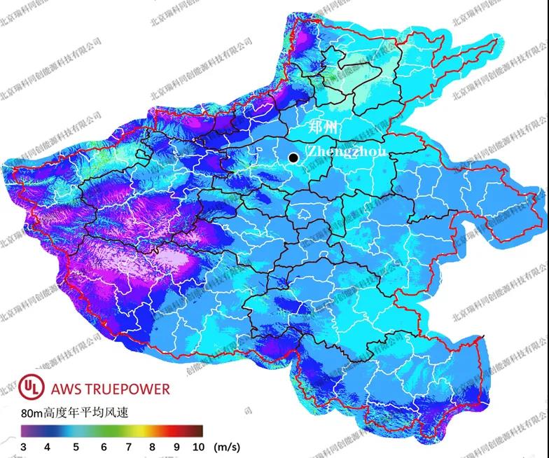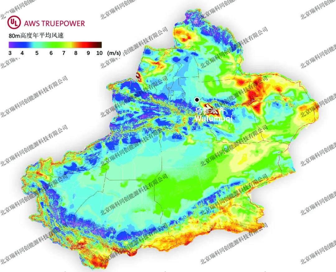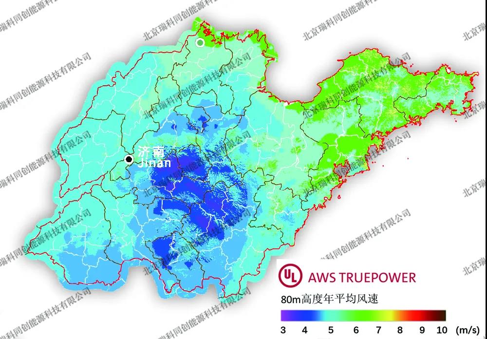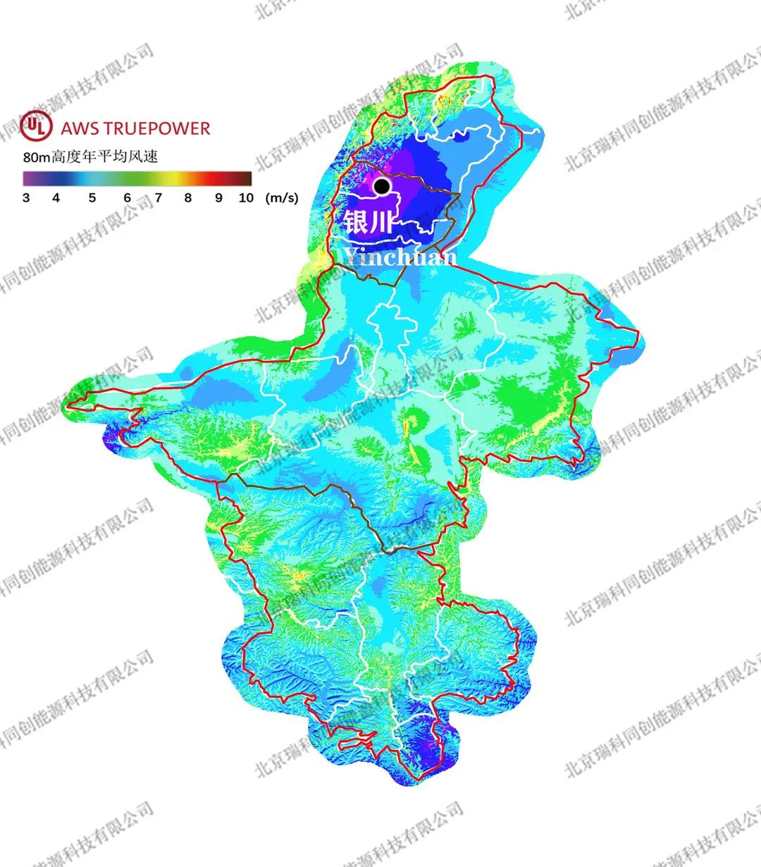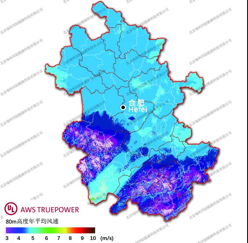 圖譜來(lái)源:瑞科科技與美國(guó)UL AWS Truepower公司就Windnavigator風(fēng)資源宏觀選址模塊,聯(lián)合發(fā)布的200m高分辨率年平均風(fēng)速分省圖譜。華北地區(qū)