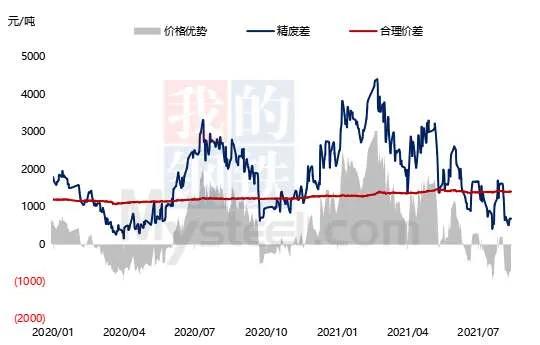 消費(fèi)端精廢替代性正在逐步減弱,據(jù)Mysteel統(tǒng)計(jì),國內(nèi)主流地區(qū)精廢差已從年初3000元/噸跌破千元關(guān)口,廢銅的經(jīng)濟(jì)效益在不斷縮減,市場開始逐步向精銅消費(fèi)轉(zhuǎn)移。