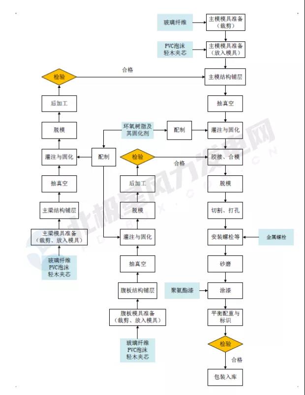 下圖為風(fēng)電葉片生產(chǎn)工藝流程圖,從圖中可以看出,一支葉片從原材料到成品,需要經(jīng)過非常多工序,原材料主要有芯材(巴沙木、PET、PVC)、環(huán)氧樹脂、纖維布、結(jié)構(gòu)膠、油漆等,下面我們一一介紹各原材料近年來價(jià)格變動(dòng)情況。