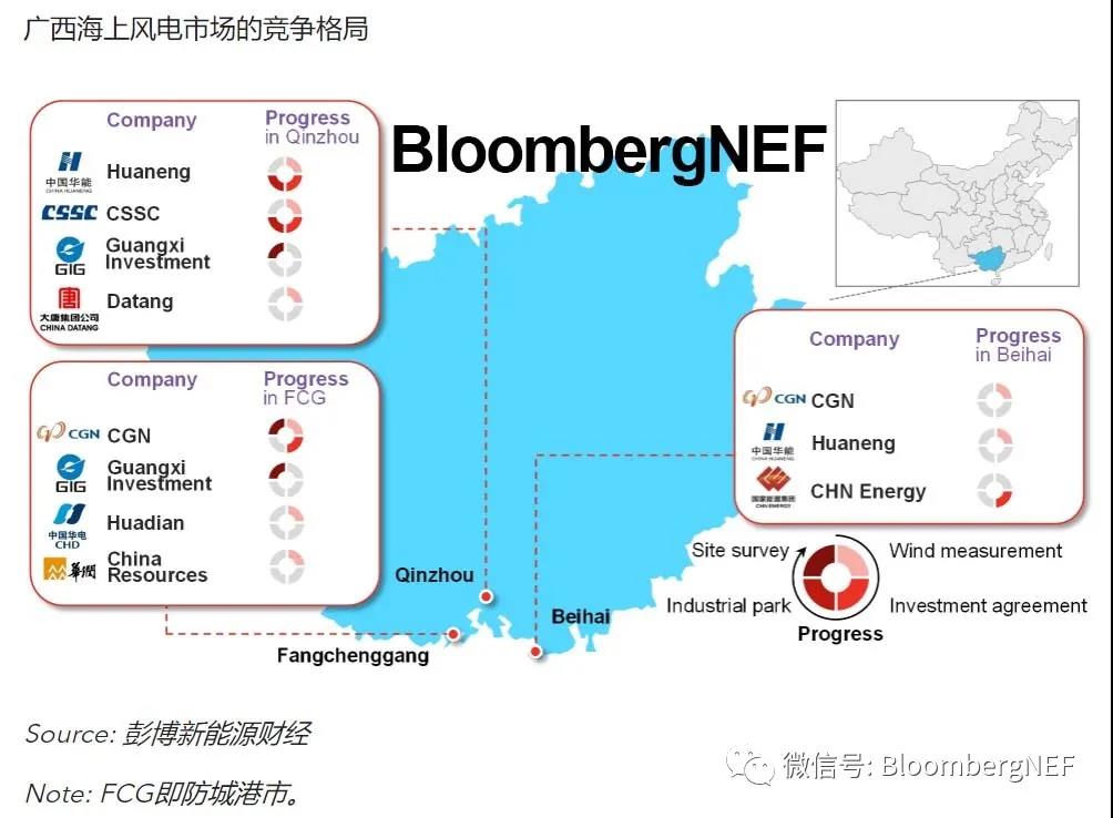 在廣西政府正式上報海上風電規(guī)劃報告前,已有八家資金雄厚的國有開發(fā)商企業(yè)進軍該市場。具備海上風電資源的三個城市中每個都有至少三家開發(fā)商在參與競爭。中國廣核集團在各企業(yè)中走在前列,已于防城港市開展前期開發(fā)活動。