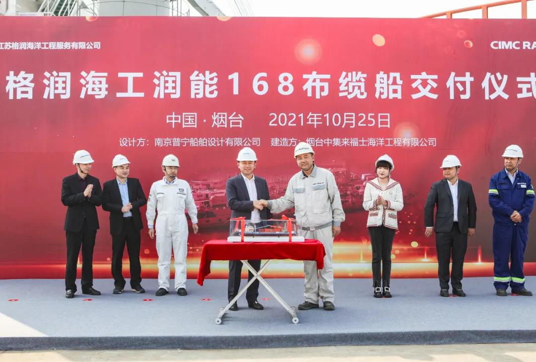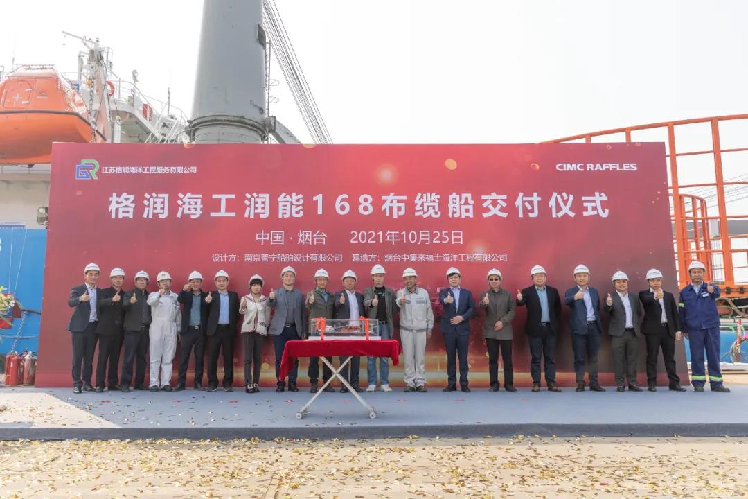 北極星風(fēng)力發(fā)電網(wǎng)訊:2021年10月25日上午,由格潤(rùn)國(guó)際控股有限公司(格潤(rùn)控股)投資運(yùn)營(yíng)的“潤(rùn)能168”敷纜船在山東煙臺(tái)中集來(lái)福士舉行現(xiàn)場(chǎng)交船儀式。
