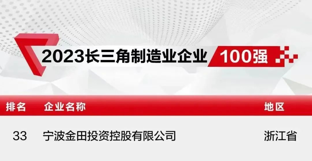 列“2023長三角制造業(yè)企業(yè)100強”33位