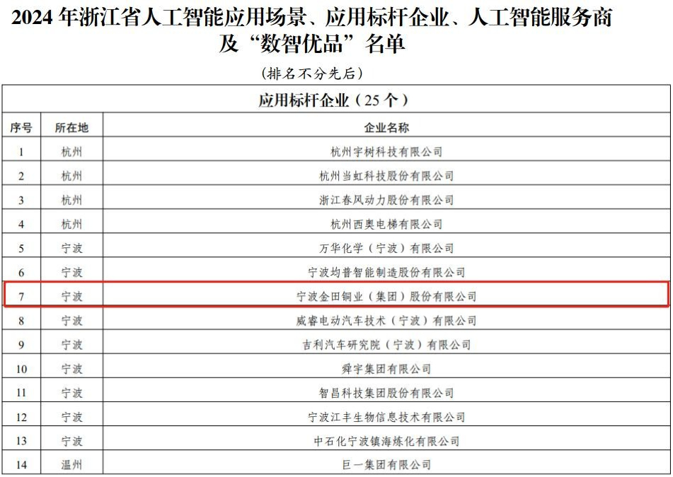 近日,公司憑借4個(gè)AI場(chǎng)景、36個(gè)數(shù)字員工和6個(gè)銅加工行業(yè)垂直模型的規(guī)劃和試點(diǎn)實(shí)踐,成功入選浙江”人工智能應(yīng)用標(biāo)桿企業(yè)”,成為省內(nèi)同行首家獲此殊榮的企業(yè),標(biāo)志著公司數(shù)智化轉(zhuǎn)型取得里程碑式突破。